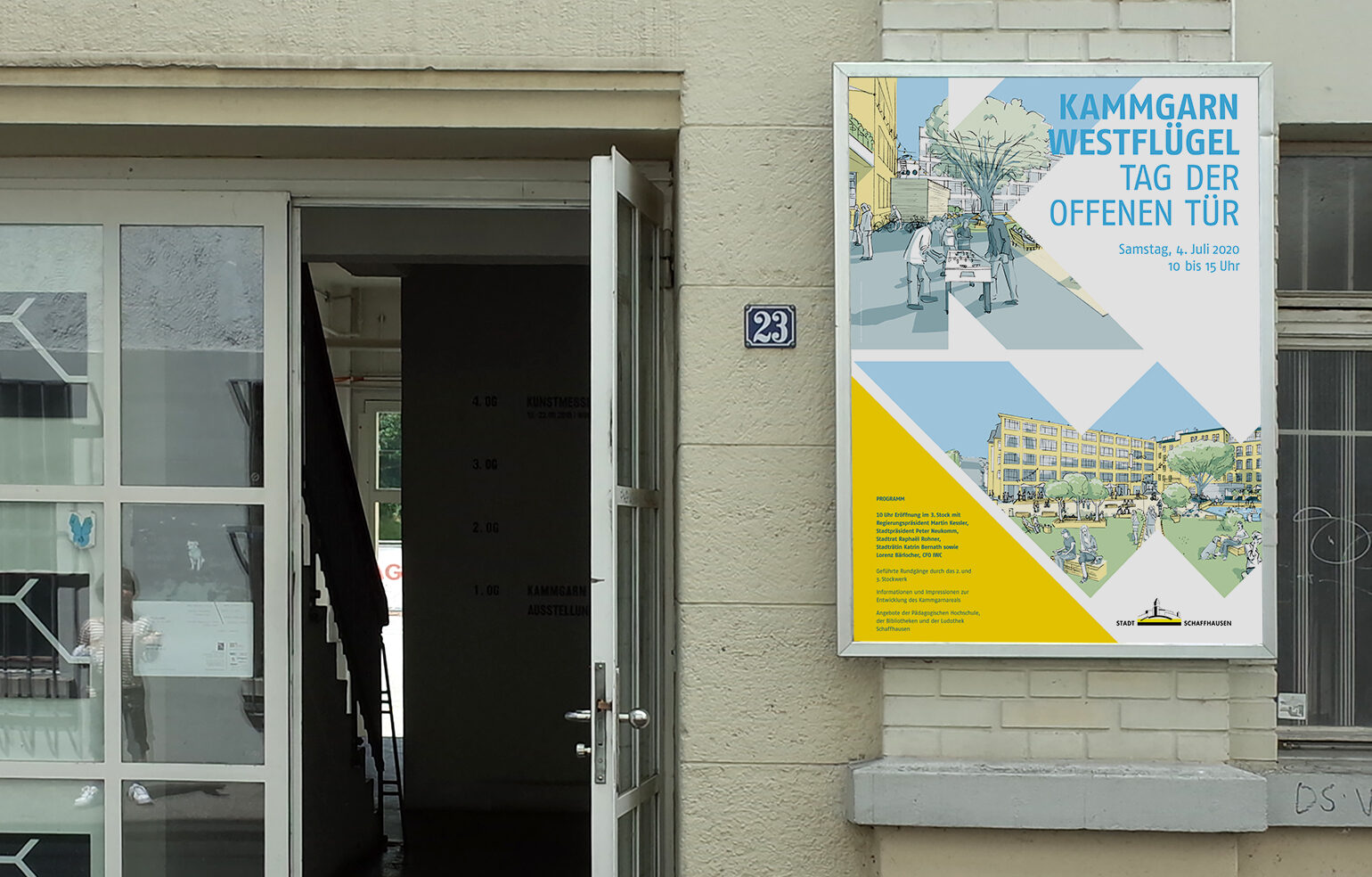 Im Vorfeld der Abstimmung über einen Baukredit zur Weiterentwicklung des Kammgarnareals veranstaltete das Hochbauamt der Stadt Schaffhausen einen Tag der offenen Tür, an dem sich die Bevölkerung über den Stand des Projekts informieren konnte. Dafür galt es diverse Informationsmedien zu gestalten.