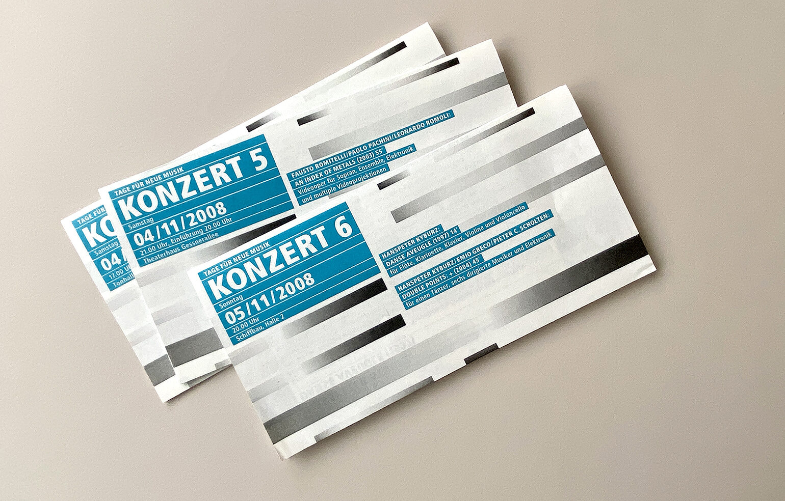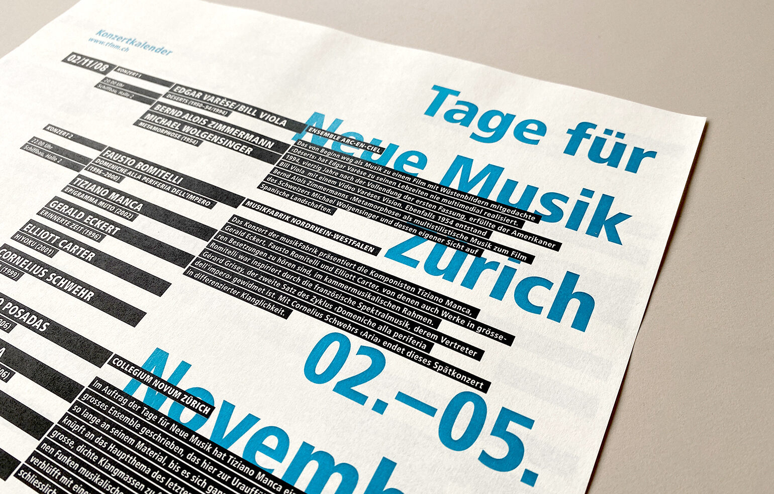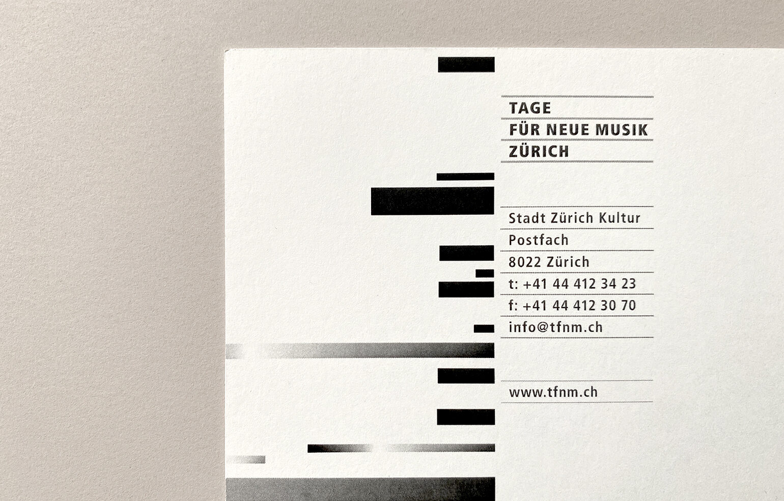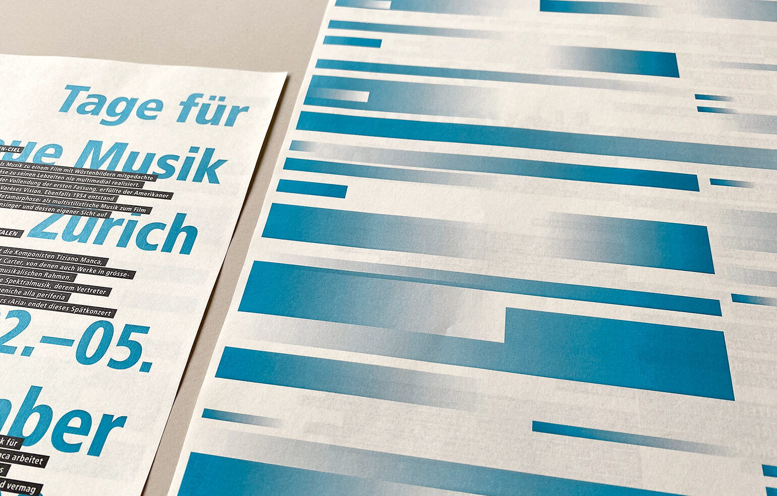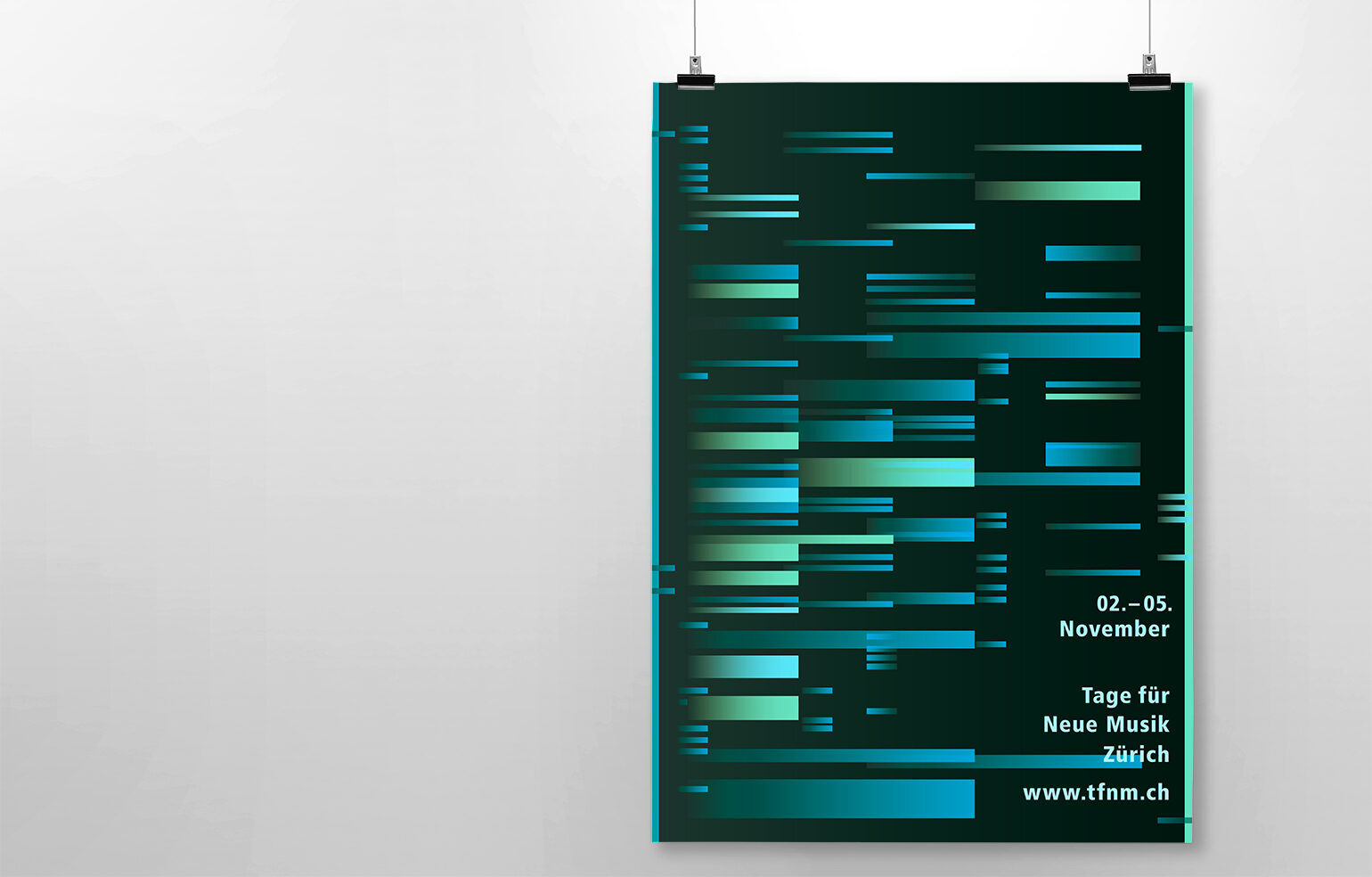Im Rahmen der Diplomarbeit entstand neben einer umfassenden Recherche zu visuellen Darstellungsformen von Musik ein neues Erscheinungsbild für das Zürcher Festival «Tage für Neue Musik», bei dem Werke zeitgenössischer Komponisten aufgeführt werden.